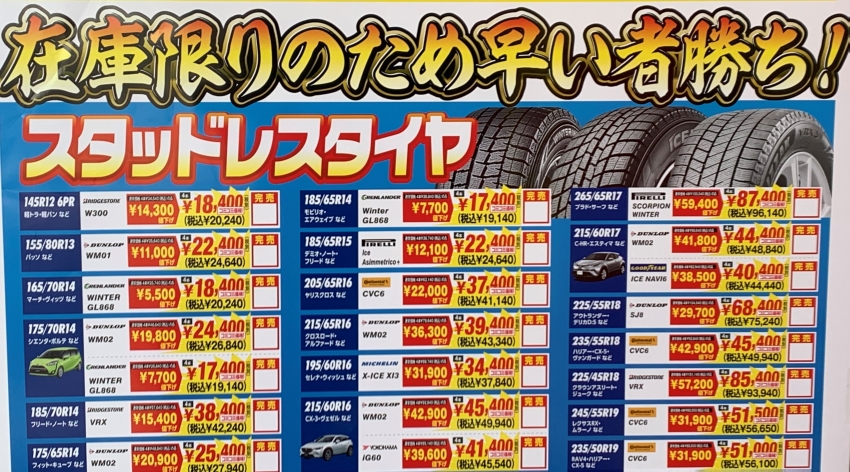 【サイズ限定】旧年製造品スタッドレスタイヤのご紹介!!