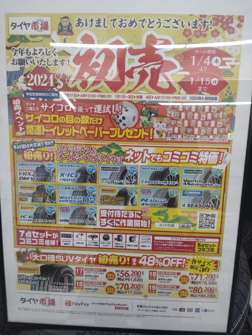タイヤ市場前橋荒牧店。初売セール実施しております!(=゚ω゚)ノ