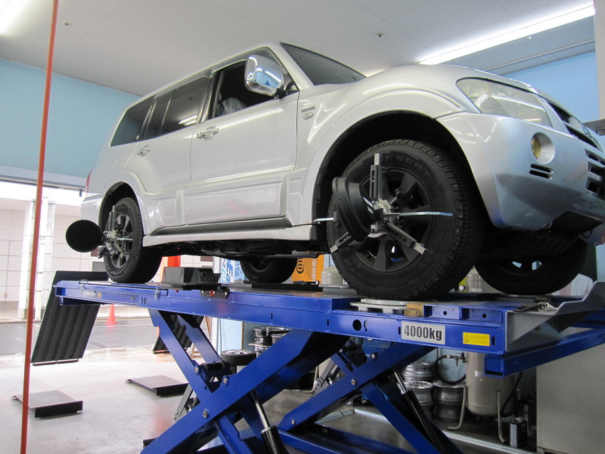 本日三菱パジェロ アライメント調整をさせて頂きました。