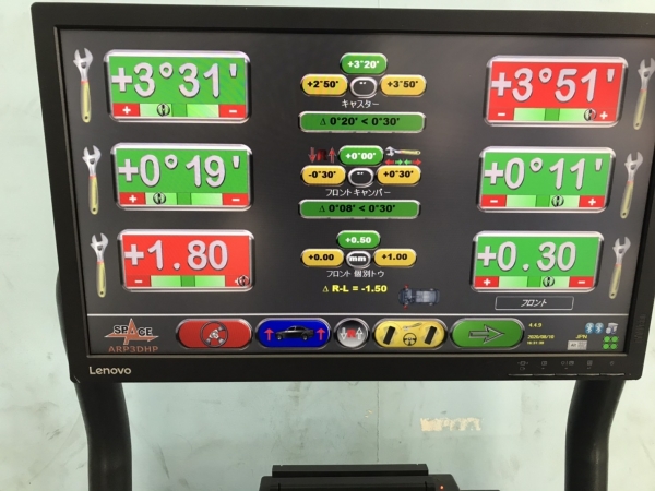 基準データーもとに車両基準値にて調整を行います。