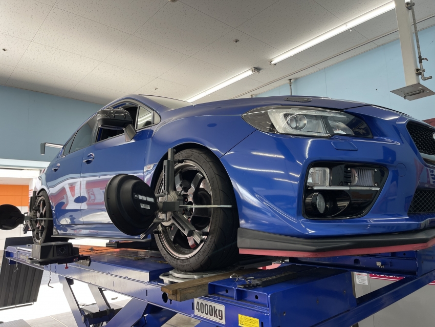 今回はWRXSTIのホイールアライメントを調整いたしました。
