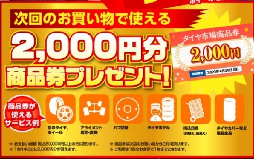 タイヤ購入者にプレゼント企画中!