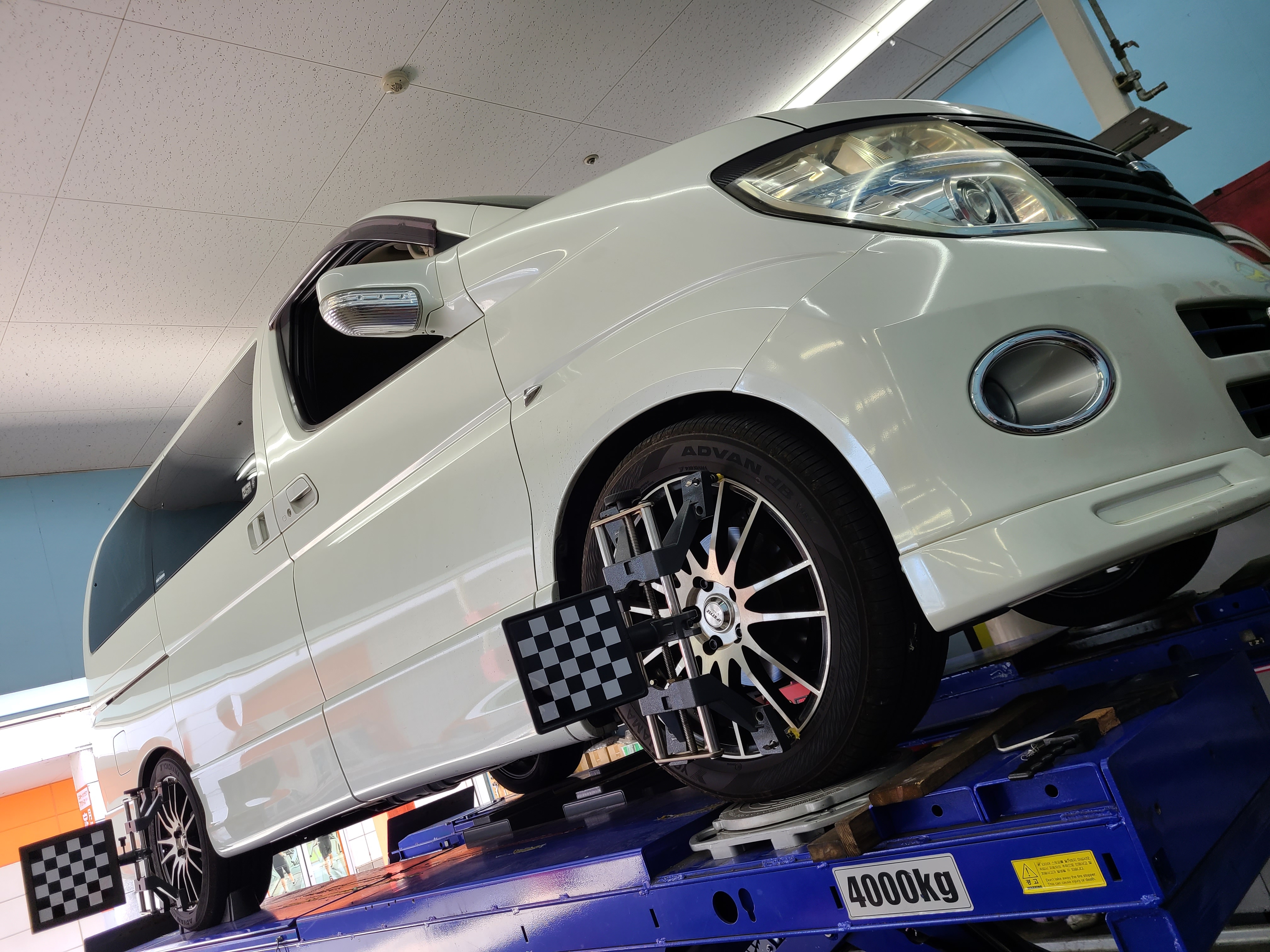 ニッサン エルグランドにお乗りのお客様よりアライメント調整の作業承りました(; ・`д・´)
