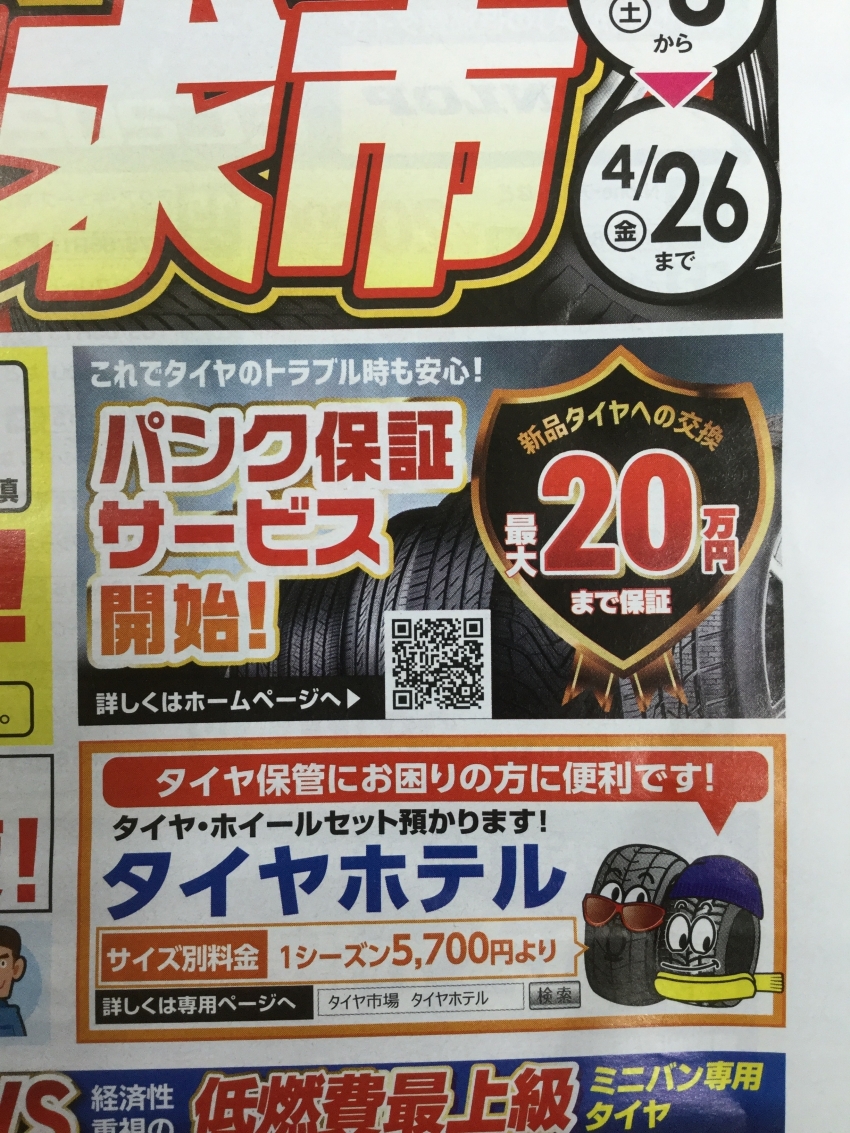 パンク保証はタイヤ購入作業時にしか加入できませんのでご注意ください!!