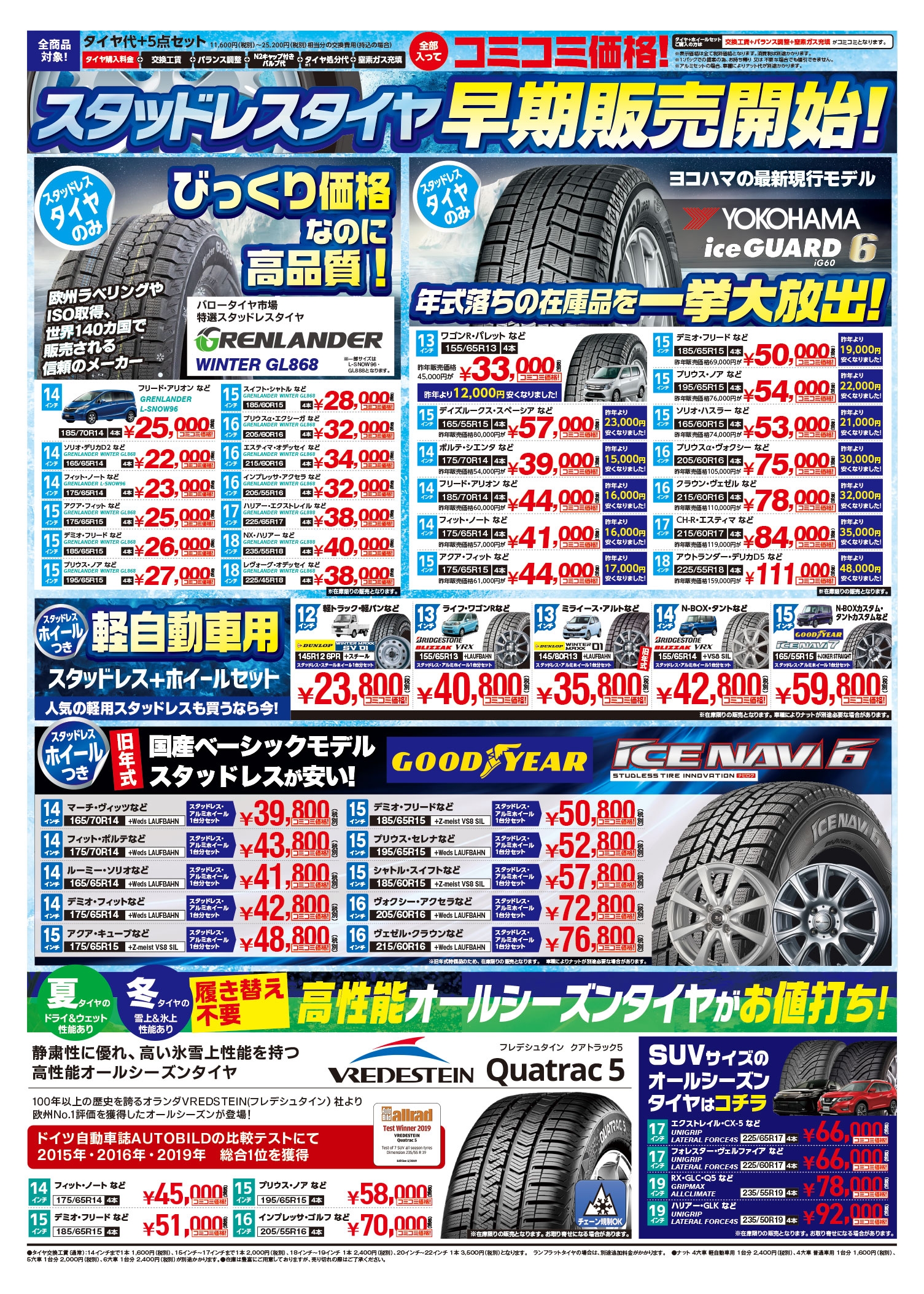 只今、バロータイヤ市場では11月1日(金)までスタッドレスタイヤをお値打ち価格にて販売中です!!