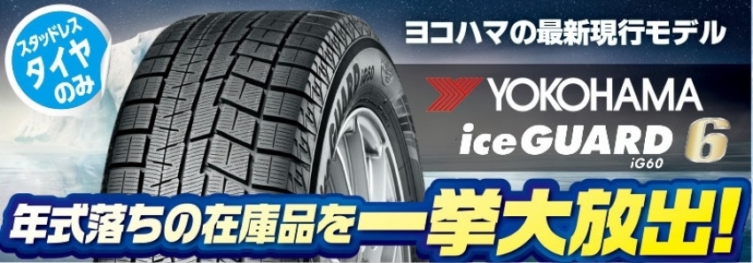 その中でもヨコハマタイヤの最新現行モデル 「ice GUARD6」が旧年式の為、「大特価」にて取り扱っています。