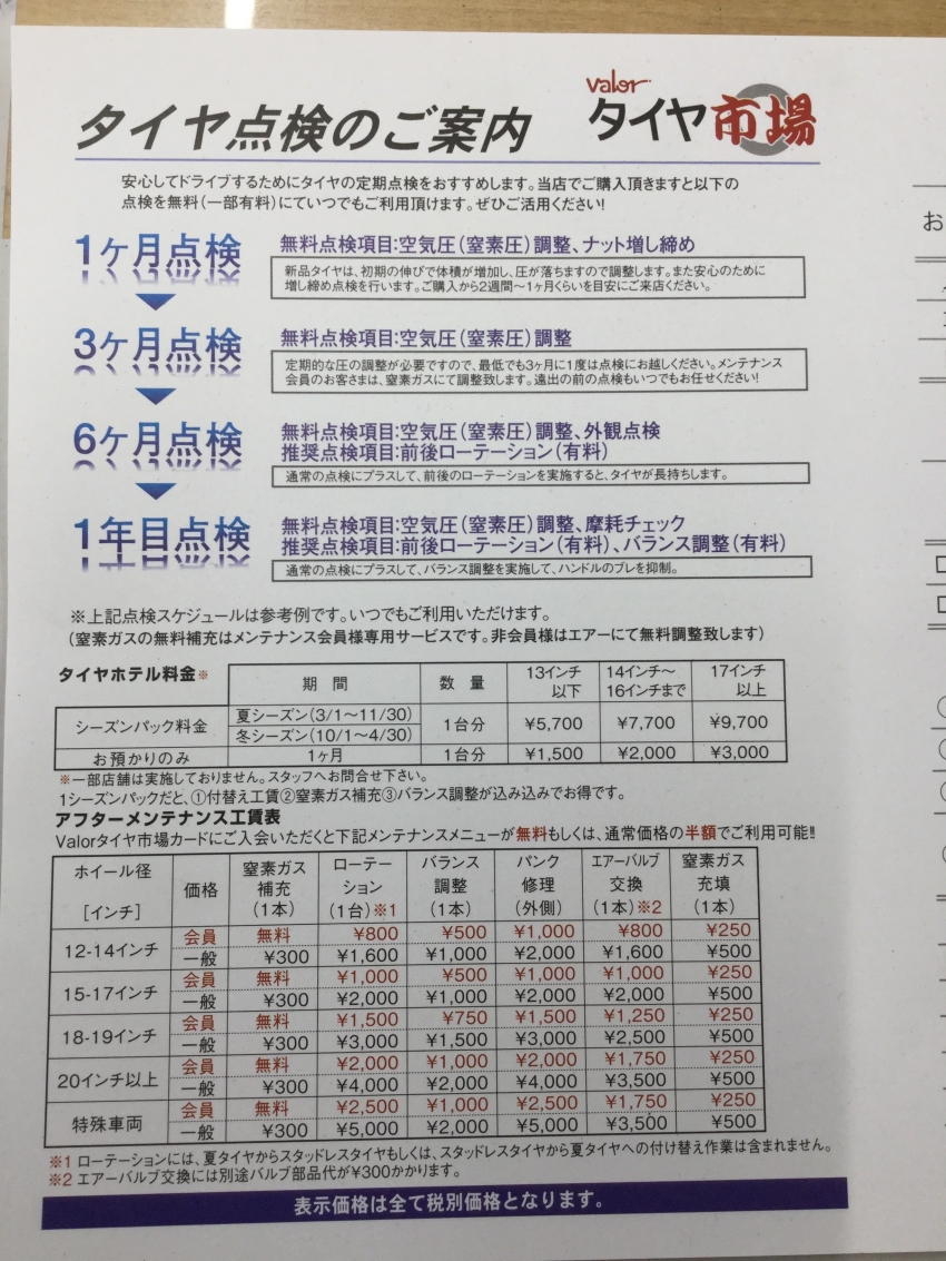 関東・東海のタイヤ市場全店ではタイヤをご購入いただいたお客様にこのようなノートをお渡ししております。