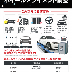 もし、お客様の中に、走行中のハンドルのズレや、タイヤの片べりが気になるお客様がいらっしゃるようでしたら、