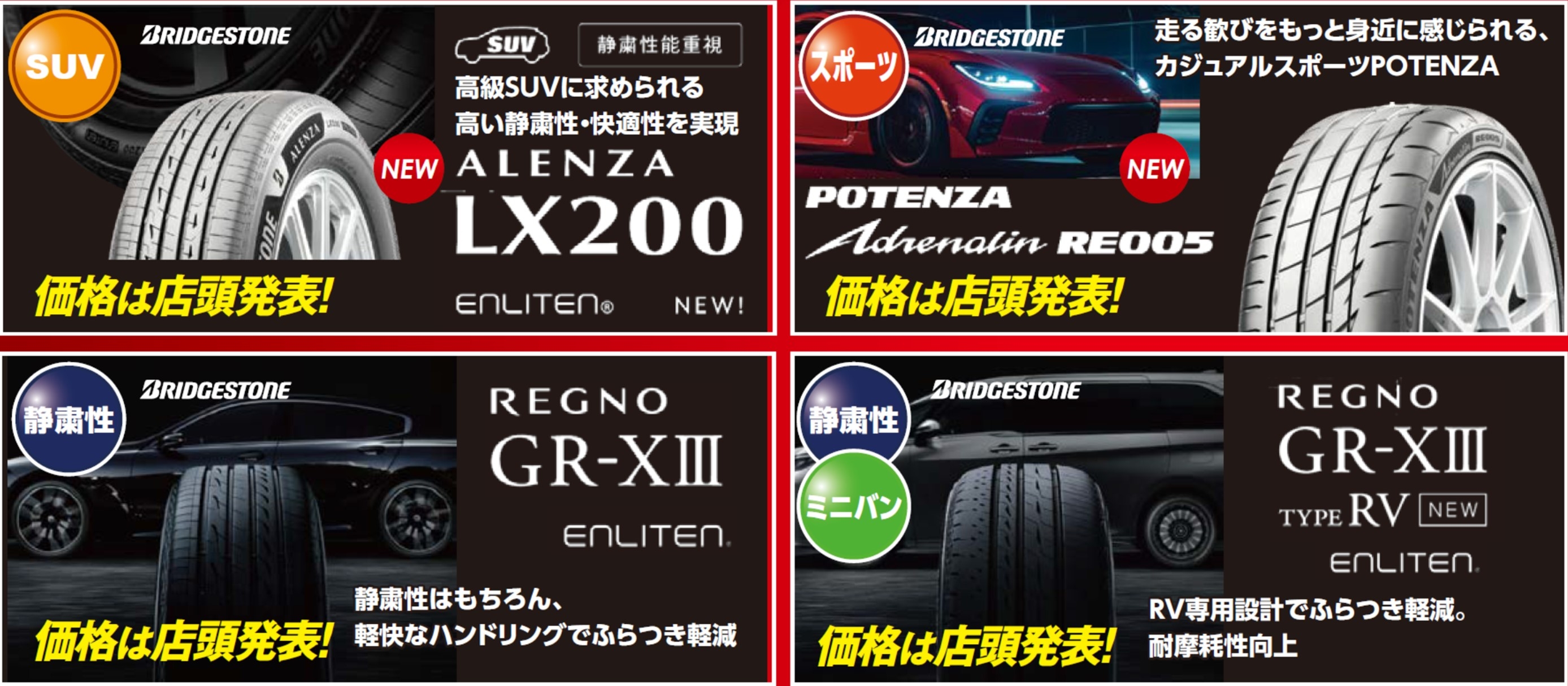 今回、ブリヂストンは多くの新商品を発売しており、すべて