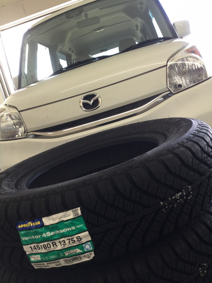 フレアワゴンにグッドイヤーのオールシーズンタイヤ取付け★