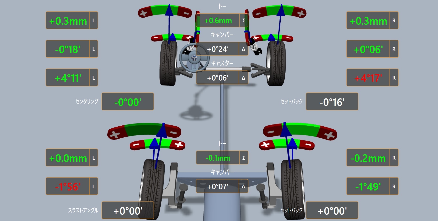 リアは調整出来ませんがこちらも左右差が無く良好であることが分かります。