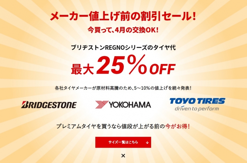 タイヤ値上げ前緊急セール開催中!!!