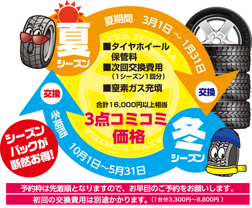 タイヤホテルの料金には保管料に加え次回の交換工賃も含まれています!