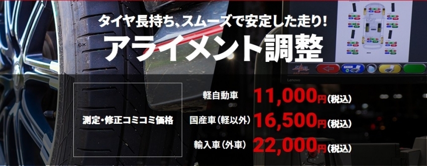 リフトアップしたためアライメント調整を希望とのことです。