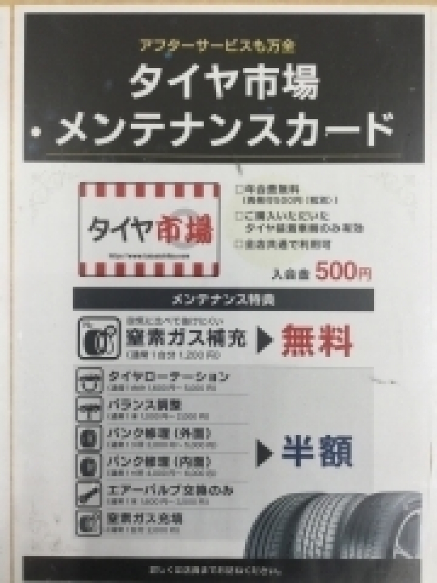タイヤ4本購入時に自動的にカードをお付けしてます!
