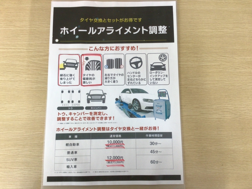 アライメントでタイヤ長持ち♪
