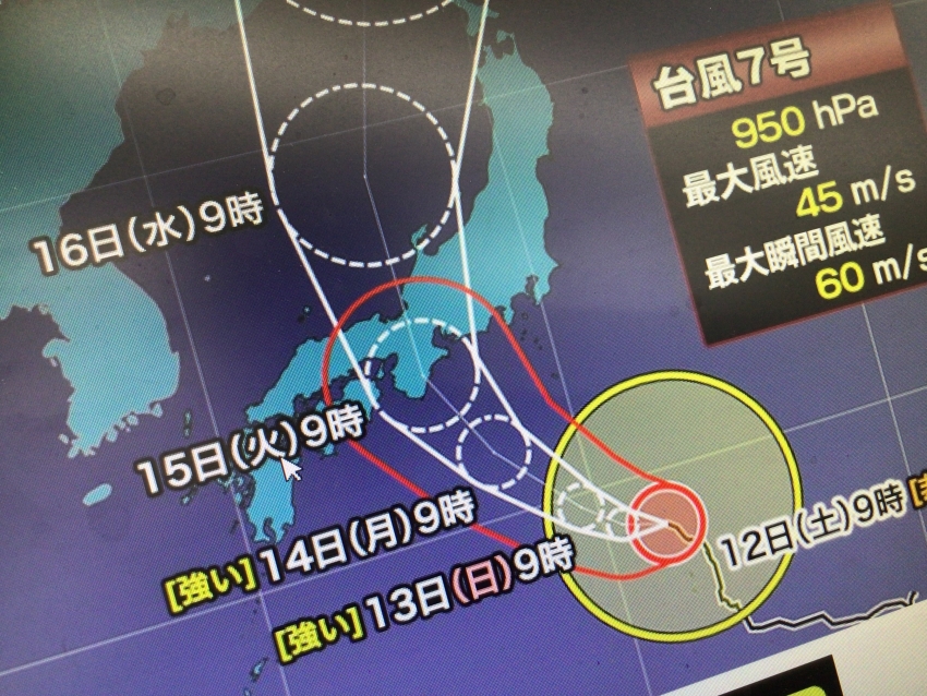 台風7号が近づいてきています