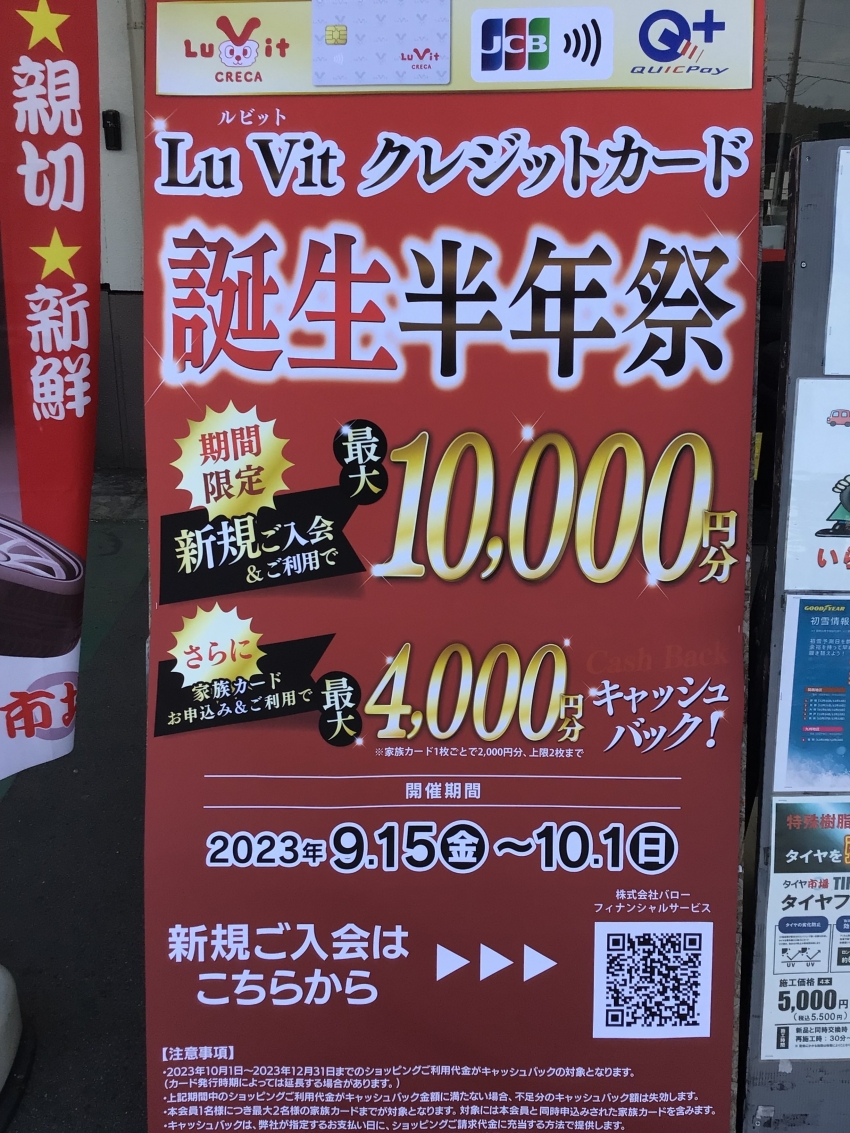 タイヤ市場でのお買い物も対象になりますのでLuVitクレジットカードを