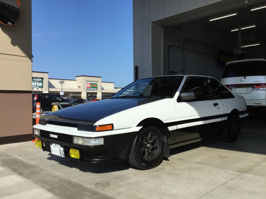 トヨタ スプリンタートレノ(AE86型)です!通称ハチロクという名はこのお車の型式から来ているもので、昔はお値段もお手頃ながらFRレイアウトのお車という事でサーキットをはじめとしたモータースポーツの入門車として人気が高かったんです!