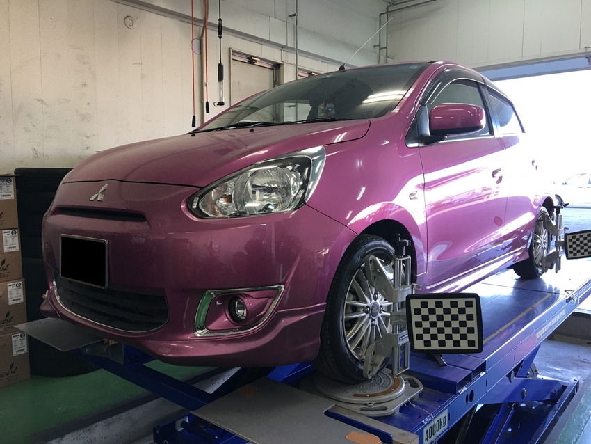 ミツビシ ミラージュにてアライメント調整行いました!(^^)!