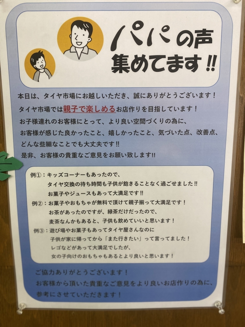 少しでもお子様がタイヤ交換の待ち時間を楽しんで頂けると
