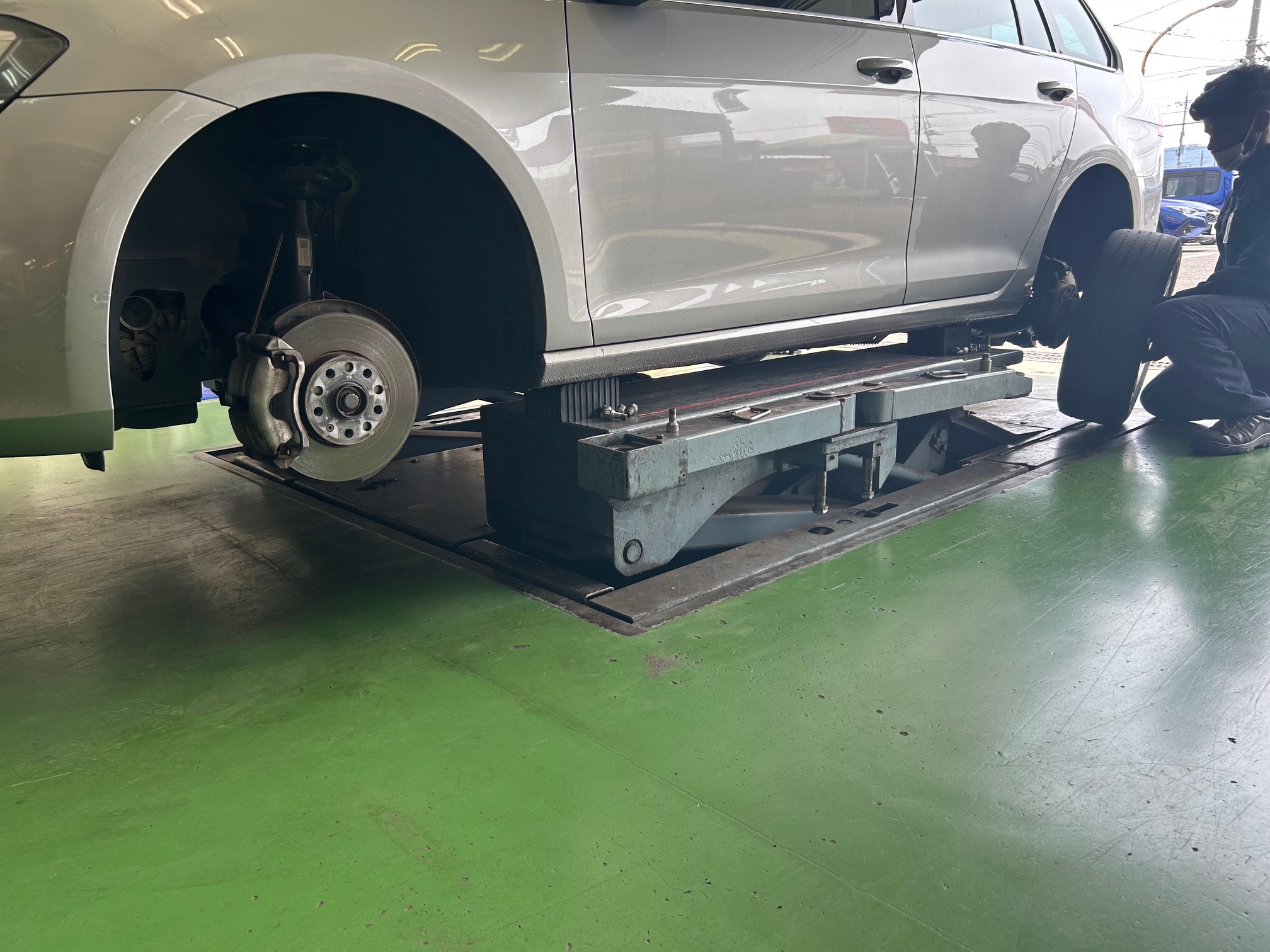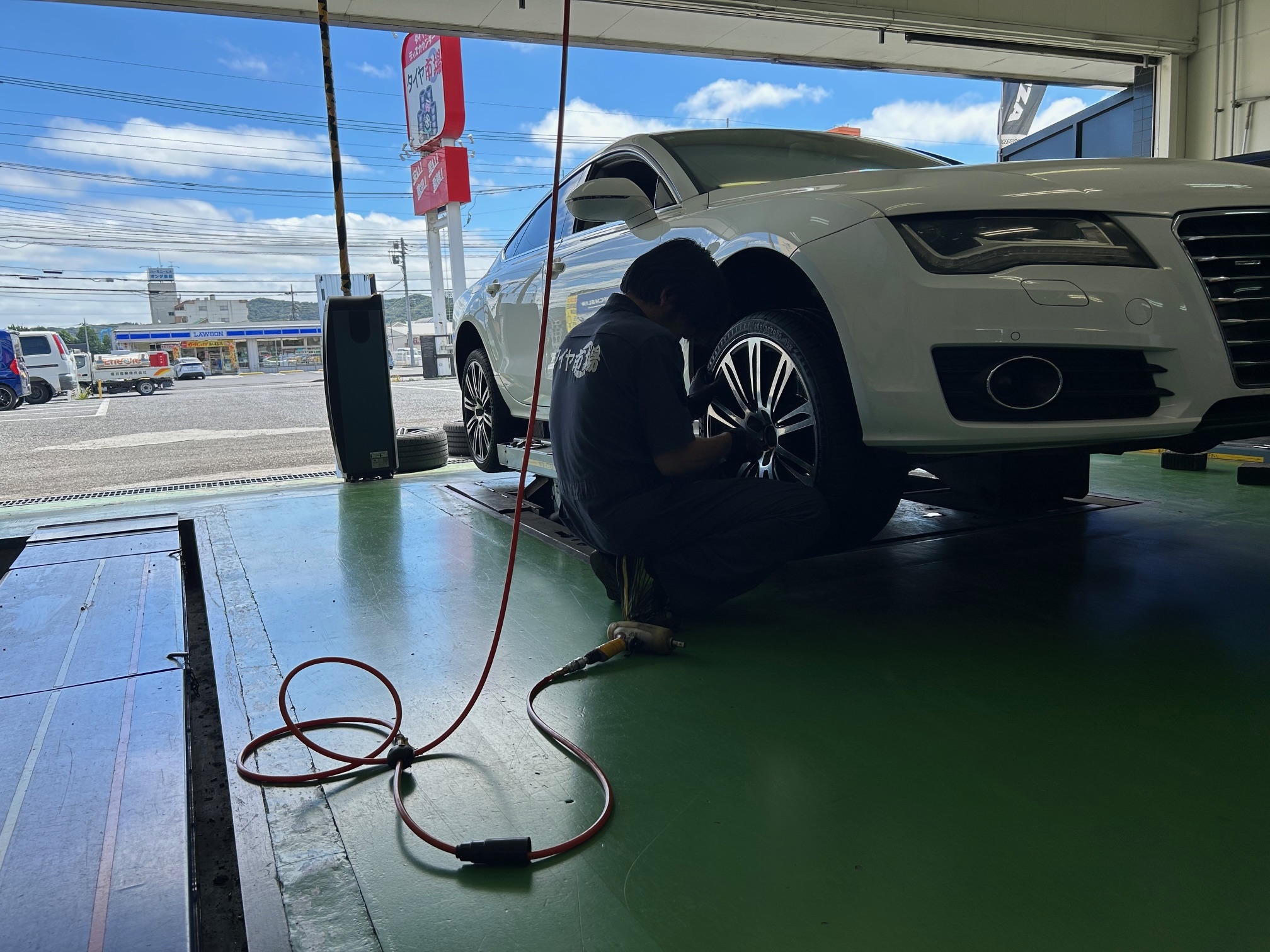 バランス調整後、車にタイヤを