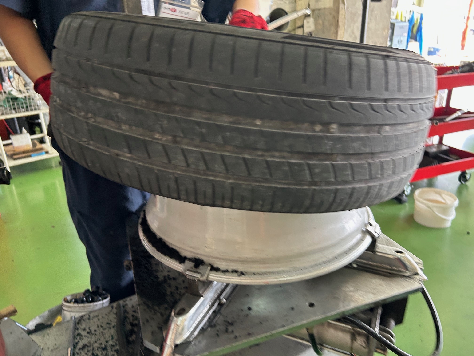 今回は左前のパンクしたタイヤの