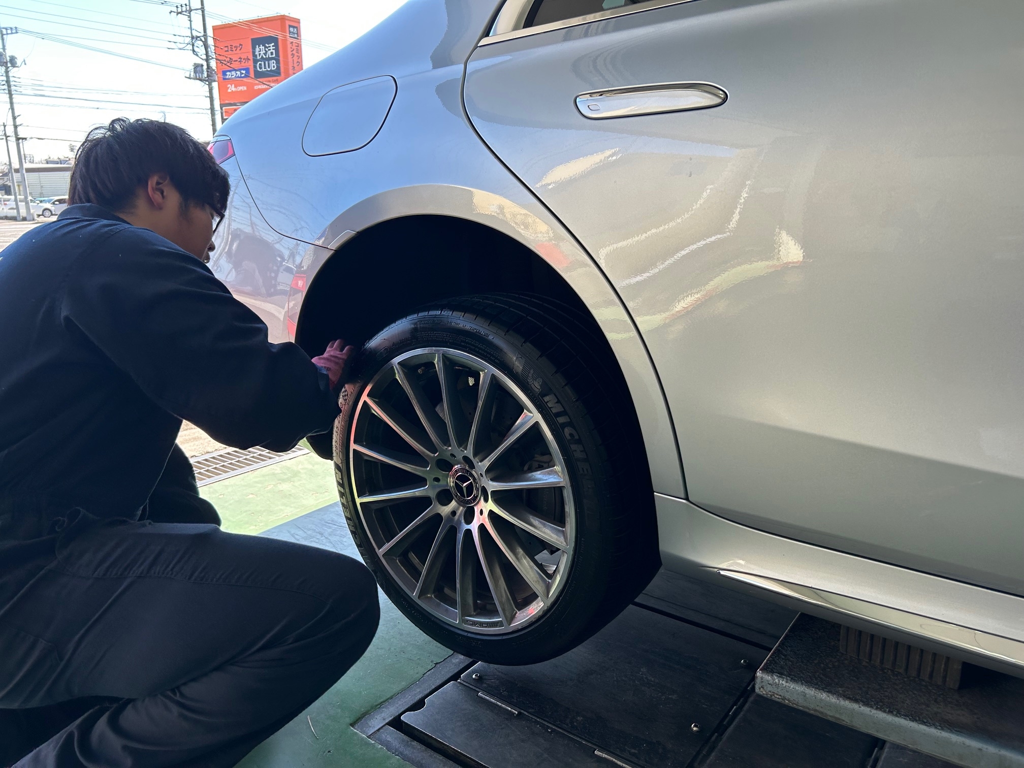 ベンツのSクラス、タイヤ4本交換!&アライメント調整!お任せあれ(^^ゞ