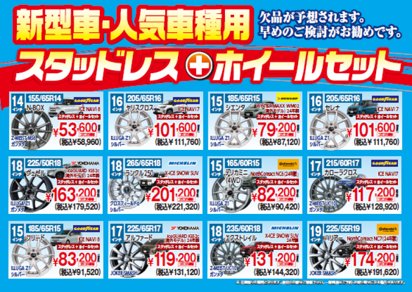 スタッドレスとホイールセットでお得になっています!
