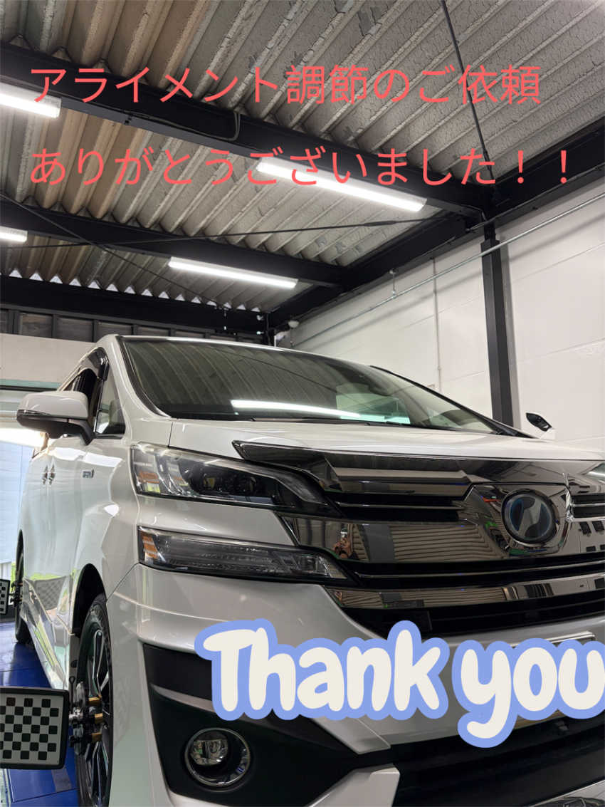 ヴェルファイアのオーナー様より持ち込みのタイヤ交換とアライメント調節のご依頼頂きました!!