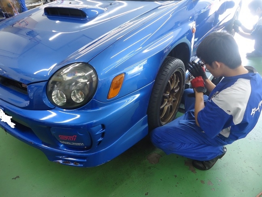 本日のお車は、インプレッサSTI (ヘッドライト形状は丸目です。個人的にはこの目が好きです!!)
