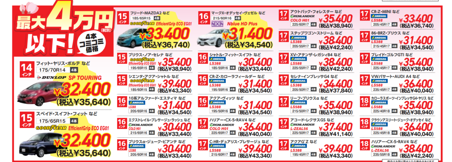 金額別でタイヤが激安になっております( ゚Д゚)