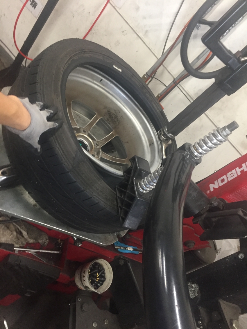 新人タイヤ組み替え練習中!
