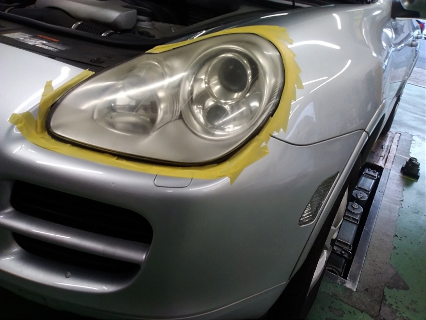 カイエンでヘッドライトコーティング入りました!!