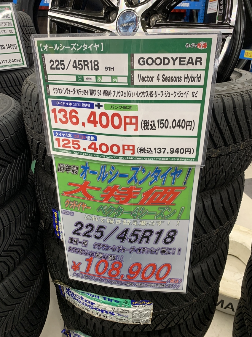 大特価!!レヴォーグ等にオススメの旧年製オールシーズンタイヤ!!