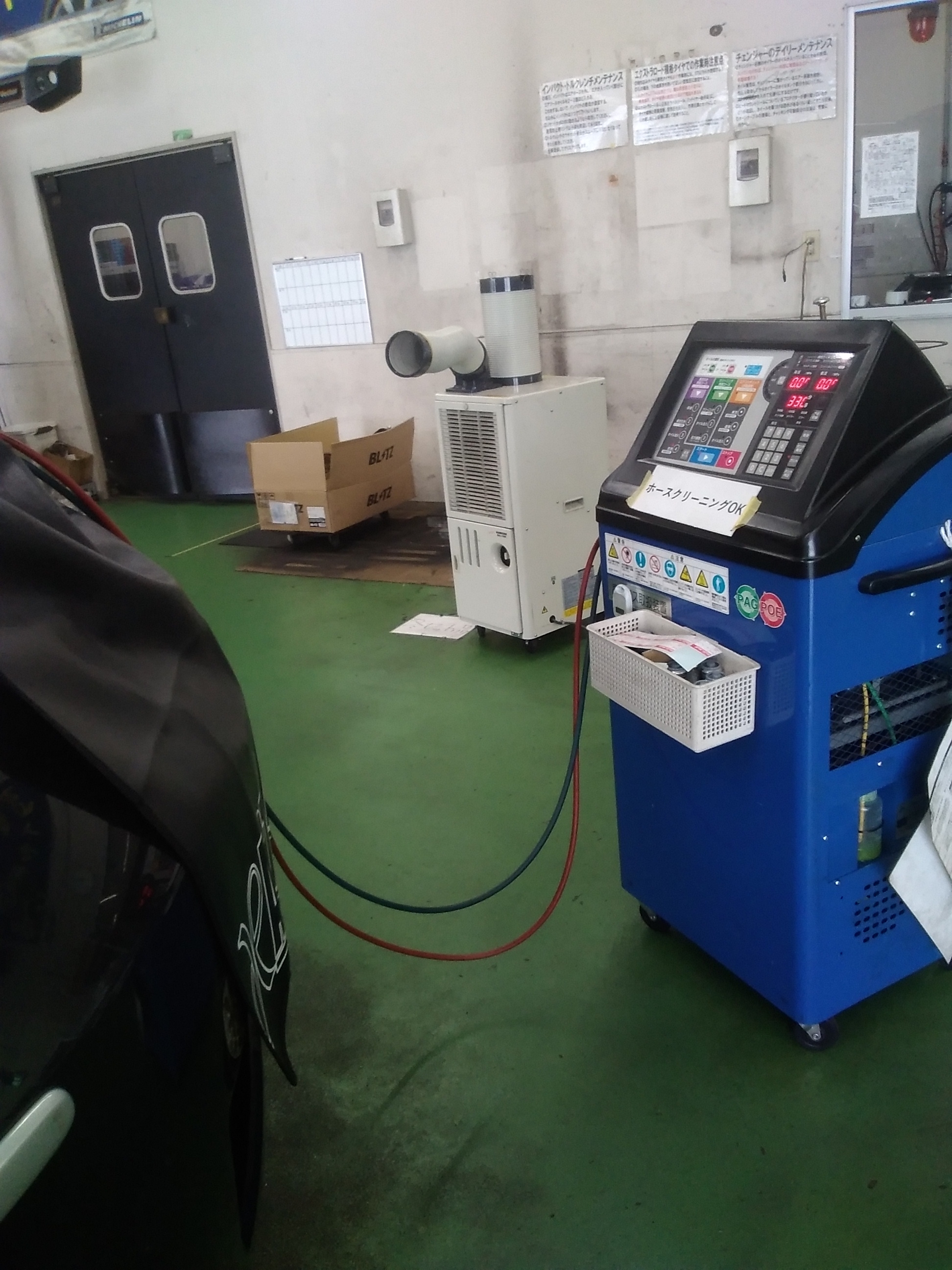 4 その後は、機械でお車のエアコンガスを一旦全部抜きます