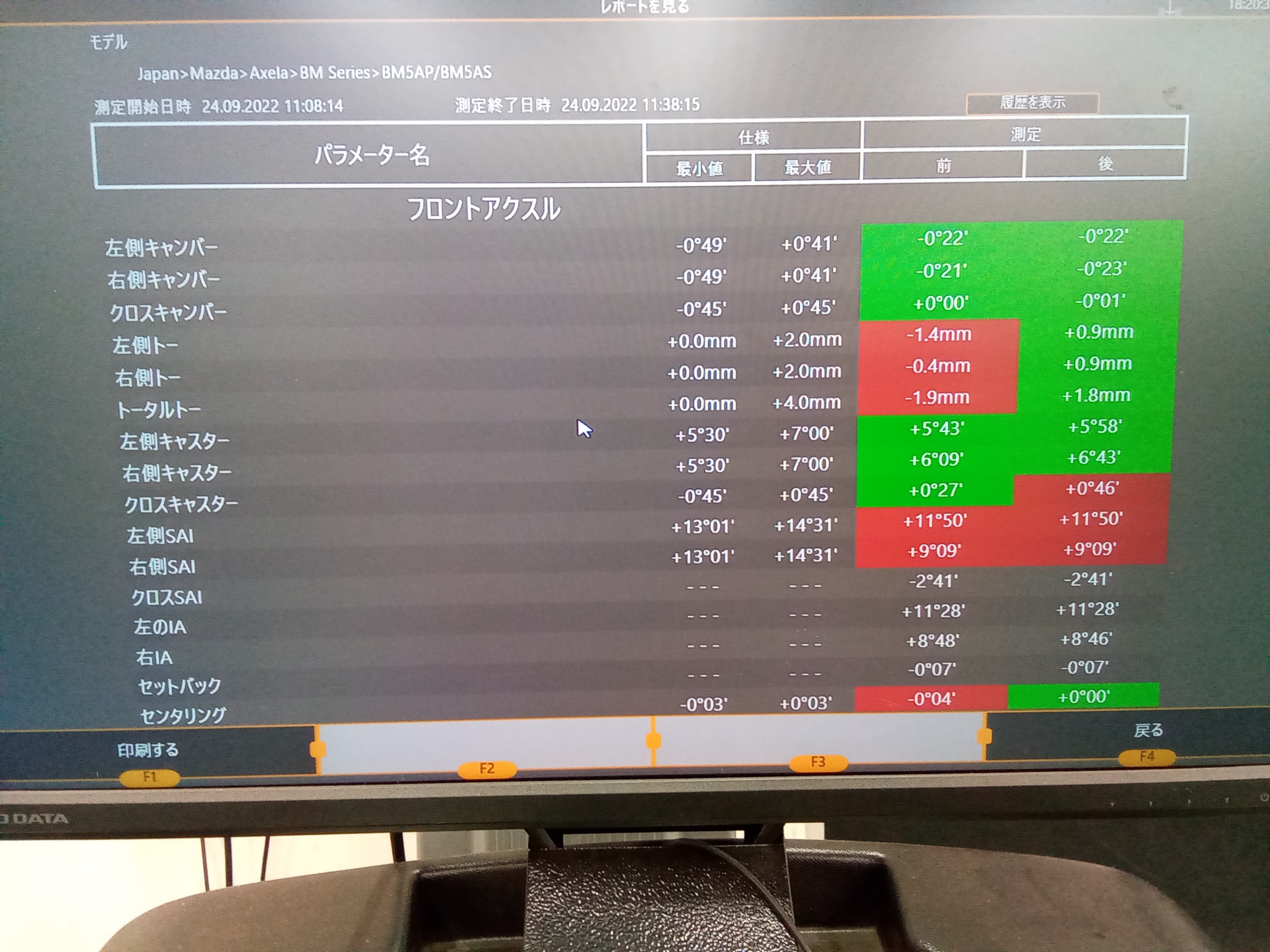 そこで、車の足回りのズレがないか測定&調整しました