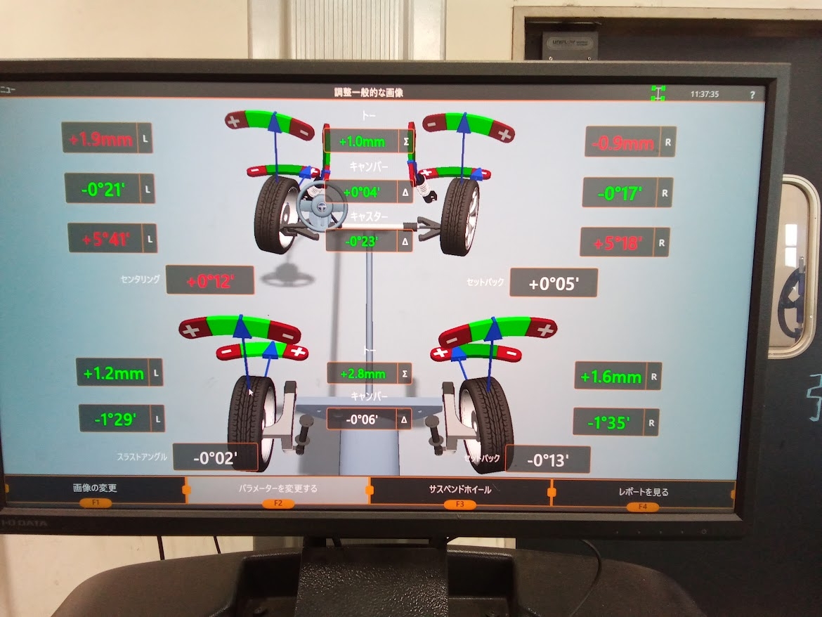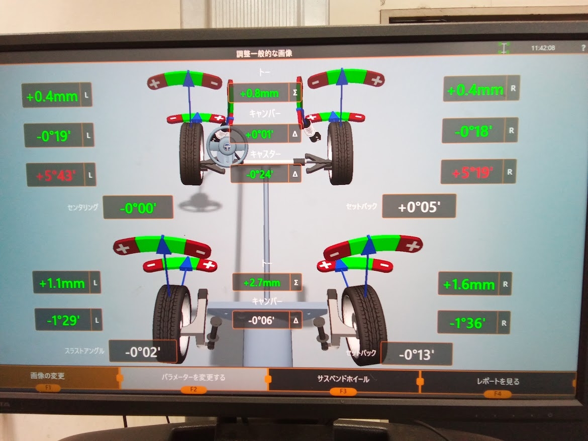 測定をした結果フロント左右でズレが出てしまっていました!