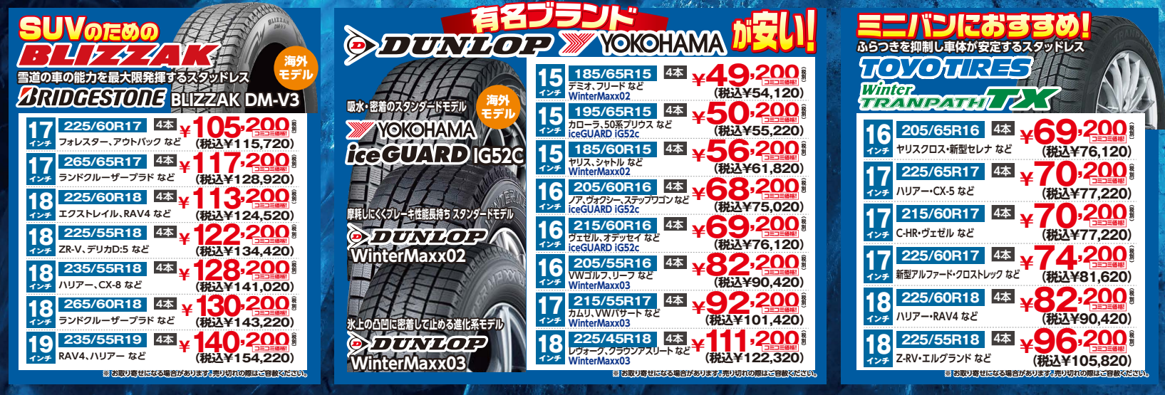 タイヤのみの お買得スタッドレスタイヤ4本最安値!
