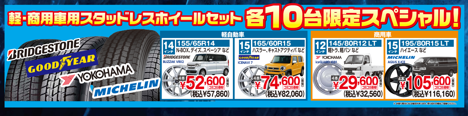 軽自動車・商用車用スタッドレスタイヤ10台限定ホイールセット!