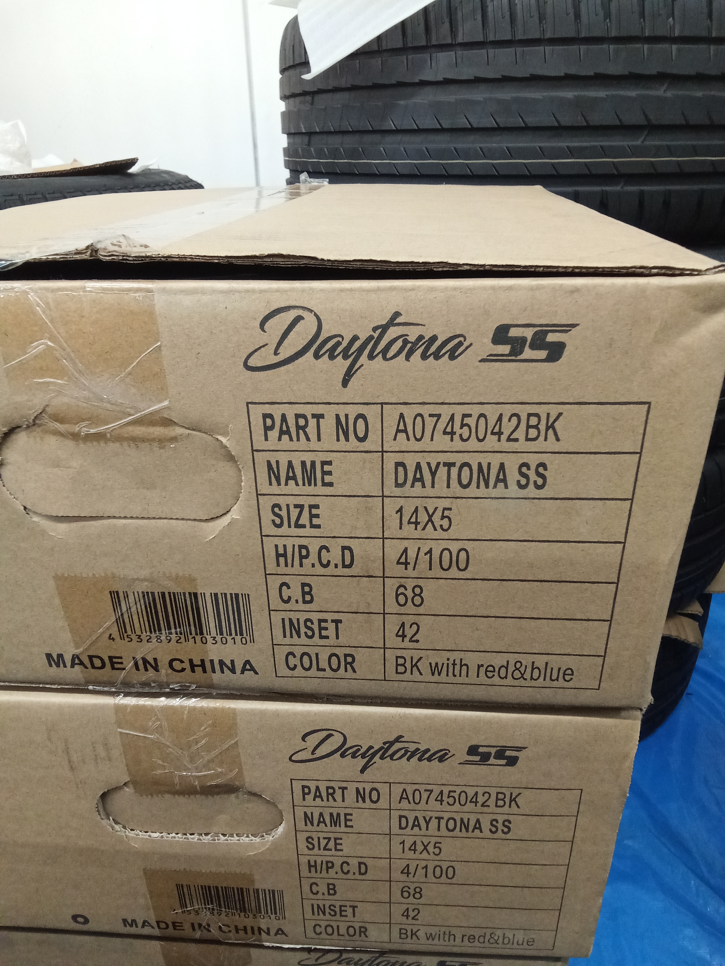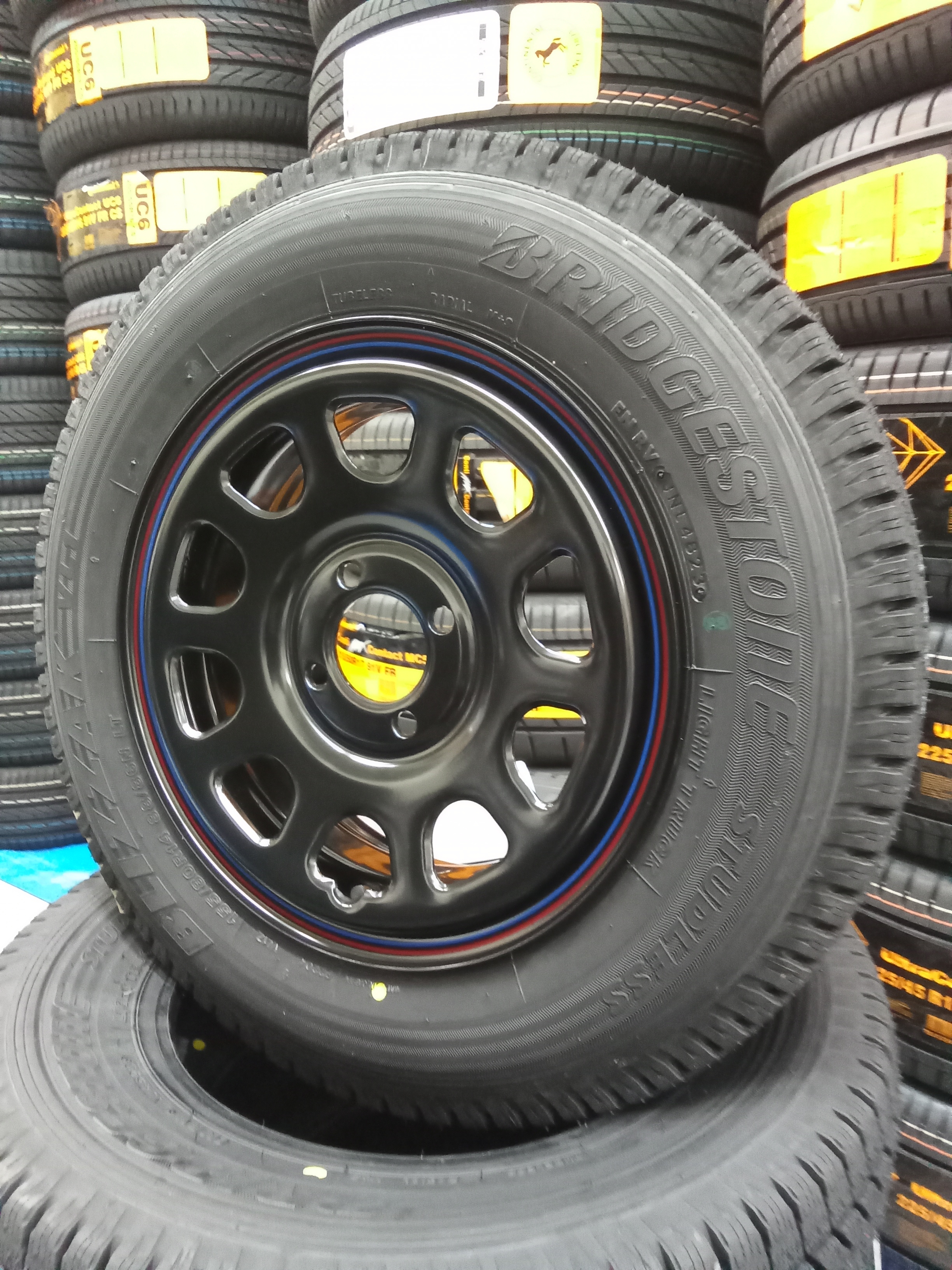 DAYTONA SSはスチール製のホイールでブラック塗装とリム部の赤と青のラインが特徴のホイールです!