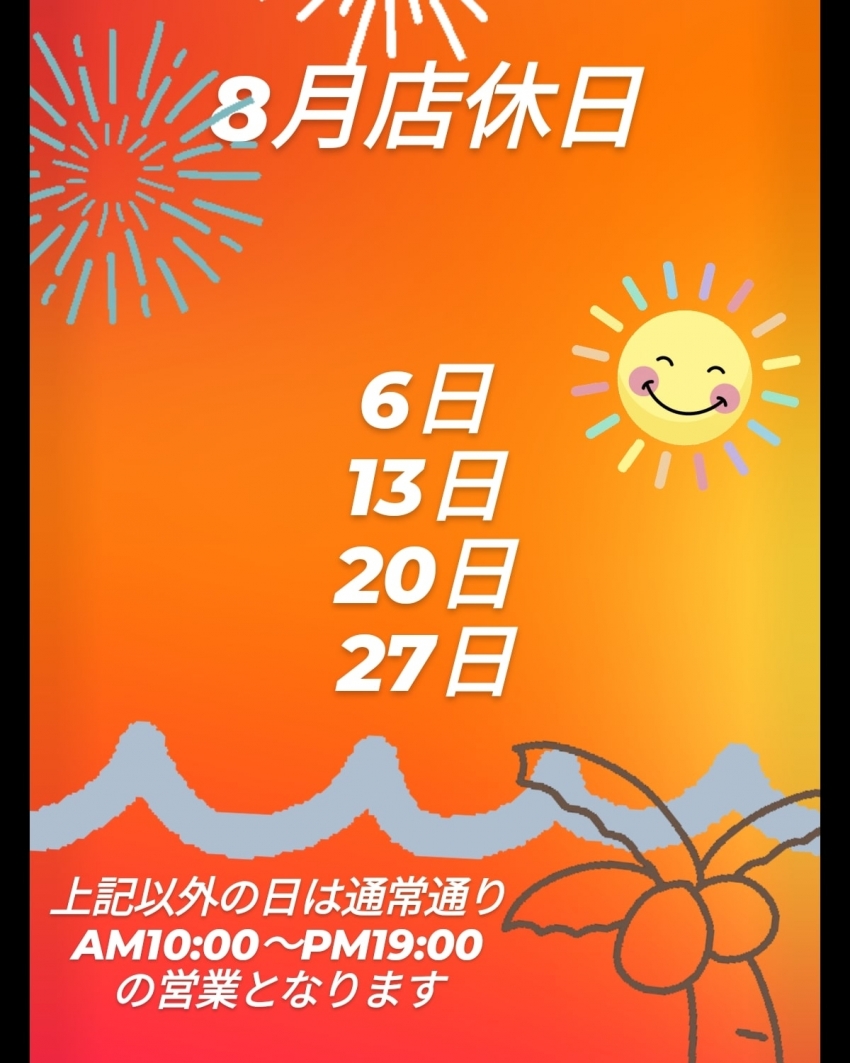 8月20日(火)店休日のお知らせ
