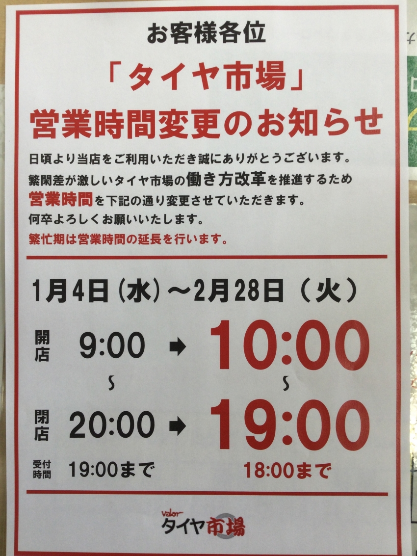 1/4~2/28までの間、営業時間を変更させていただきます。
