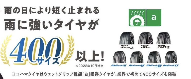 ウェットグリップ性能aのタイヤが400サイズ突破している雨に強いタイヤメーカーです!!