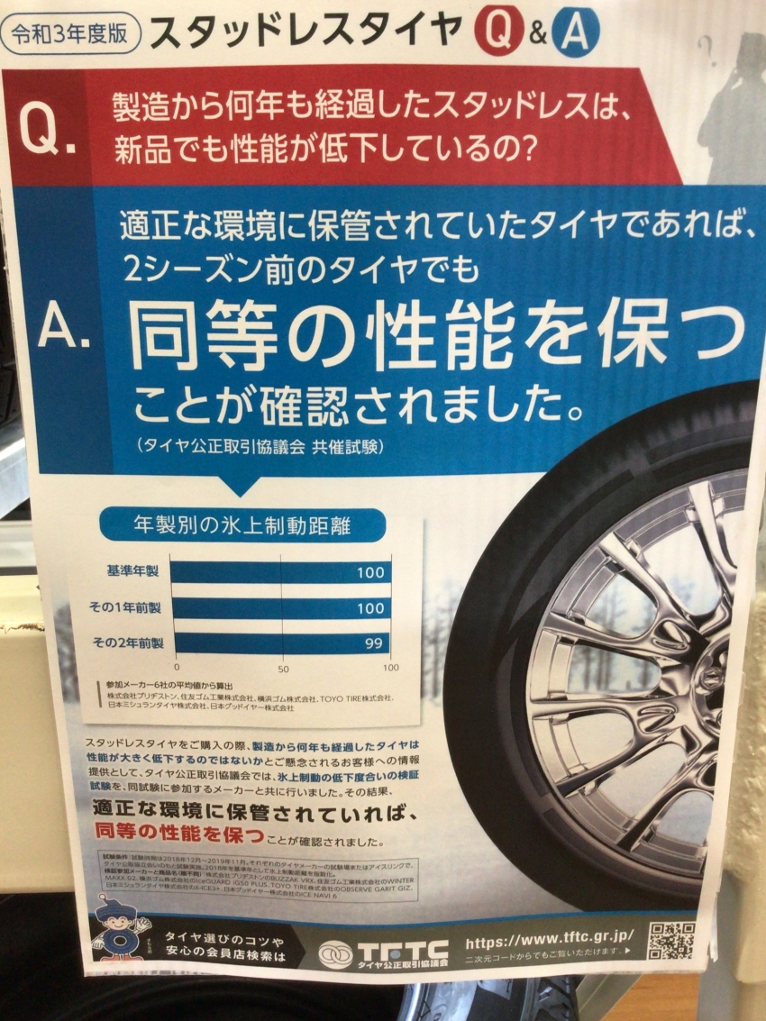 現在セール中の在庫限りのスタッドレスについてですが「去年のタイヤだけど大丈夫?」などと思うかもしれません。