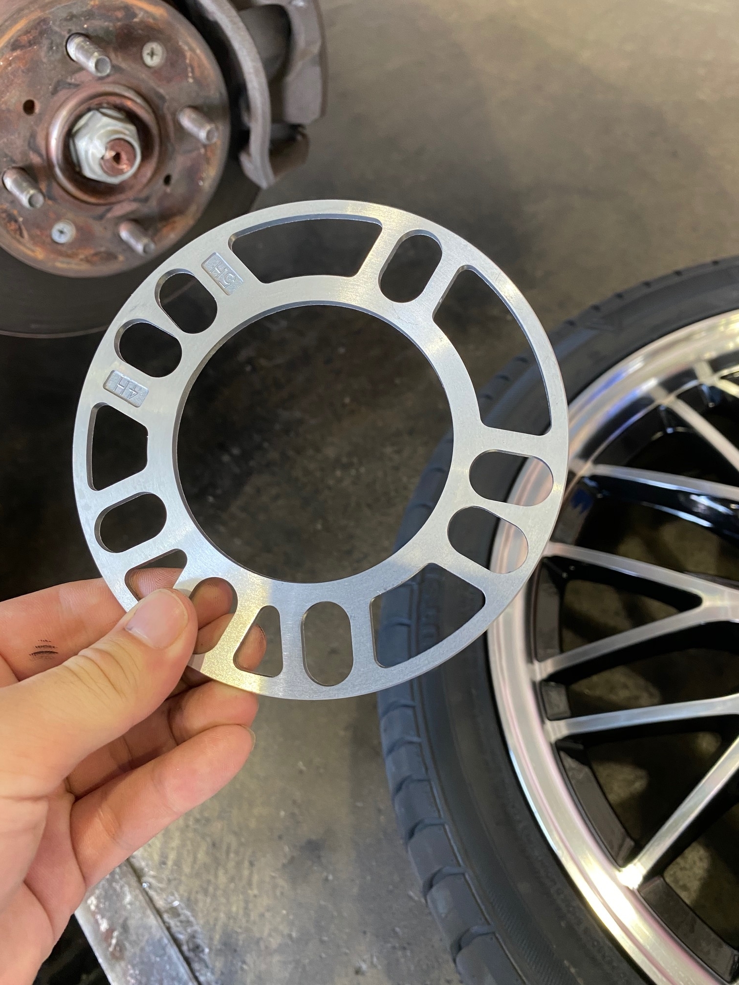今回はフロントに3㎜、リアに5㎜のスペーサーを付けました。