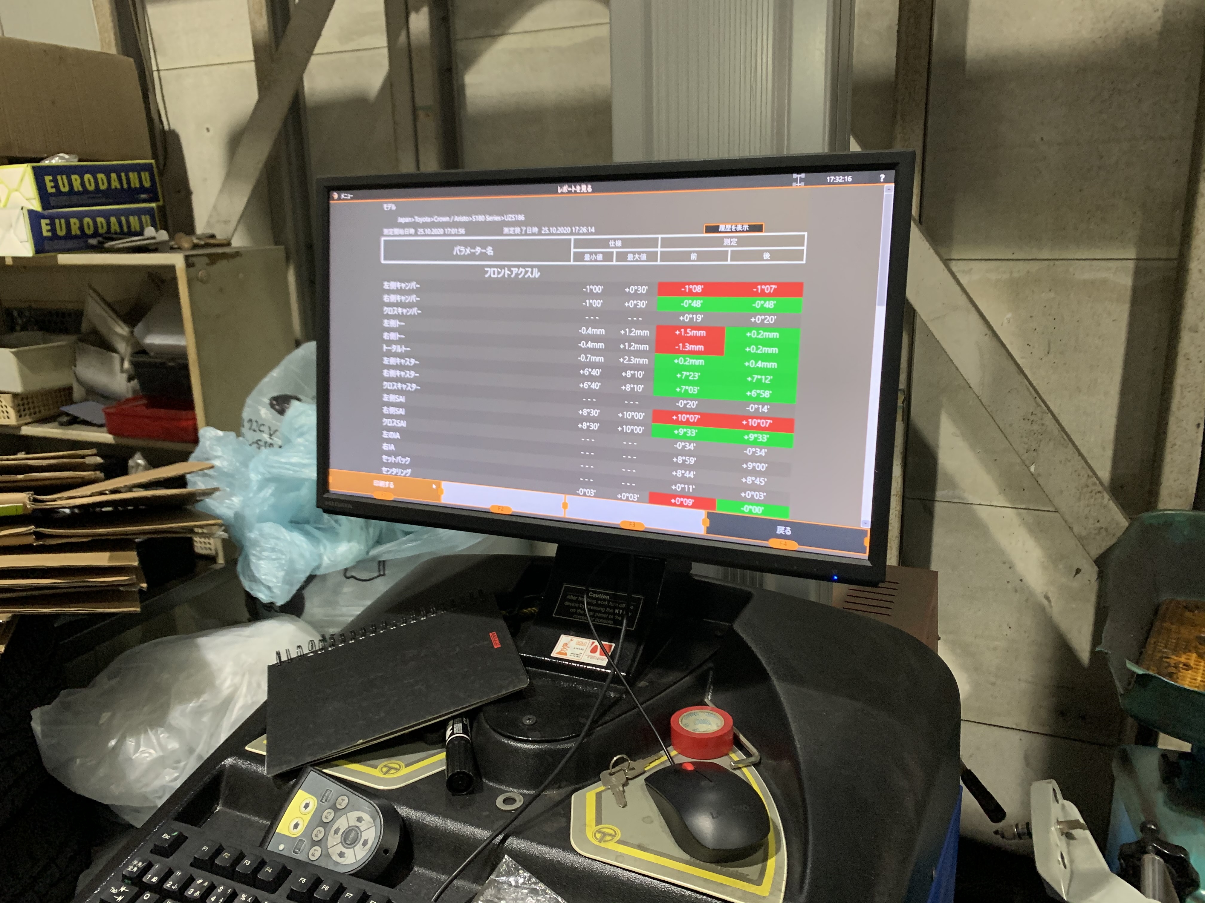 本日のアライメント調整作業の紹介は