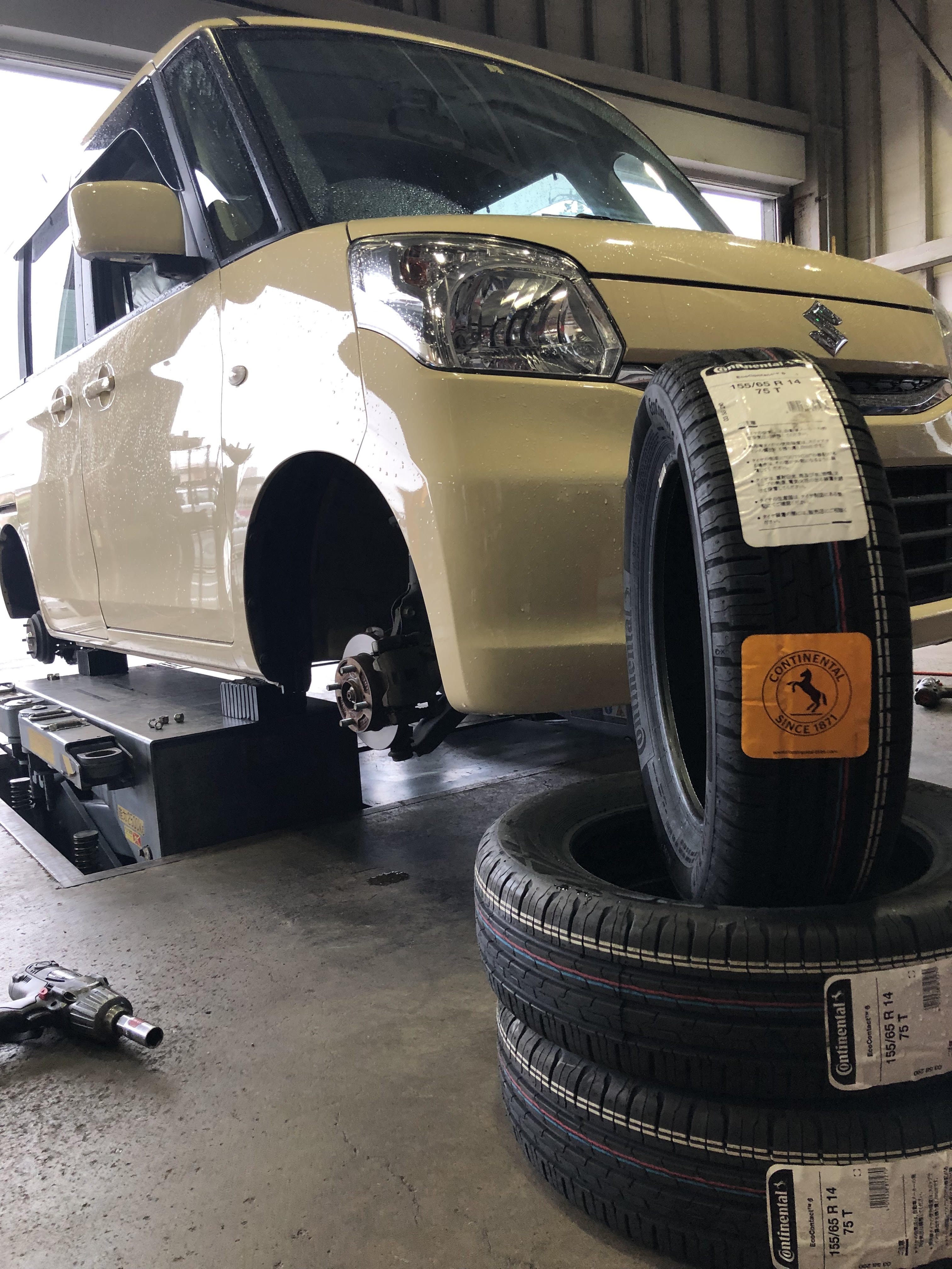 スズキ スペーシア 作業内容!(タイヤ交換・ハブ防錆・155/65R14)