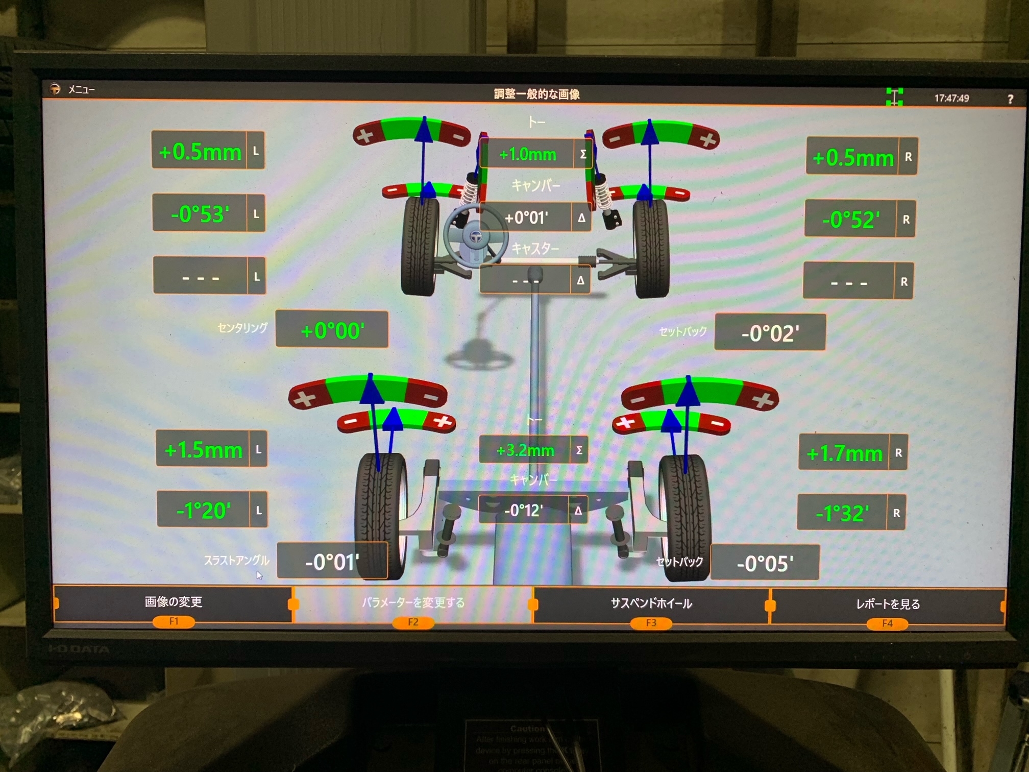 後輪側は基準値よりだいぶずれていました(;'∀')
