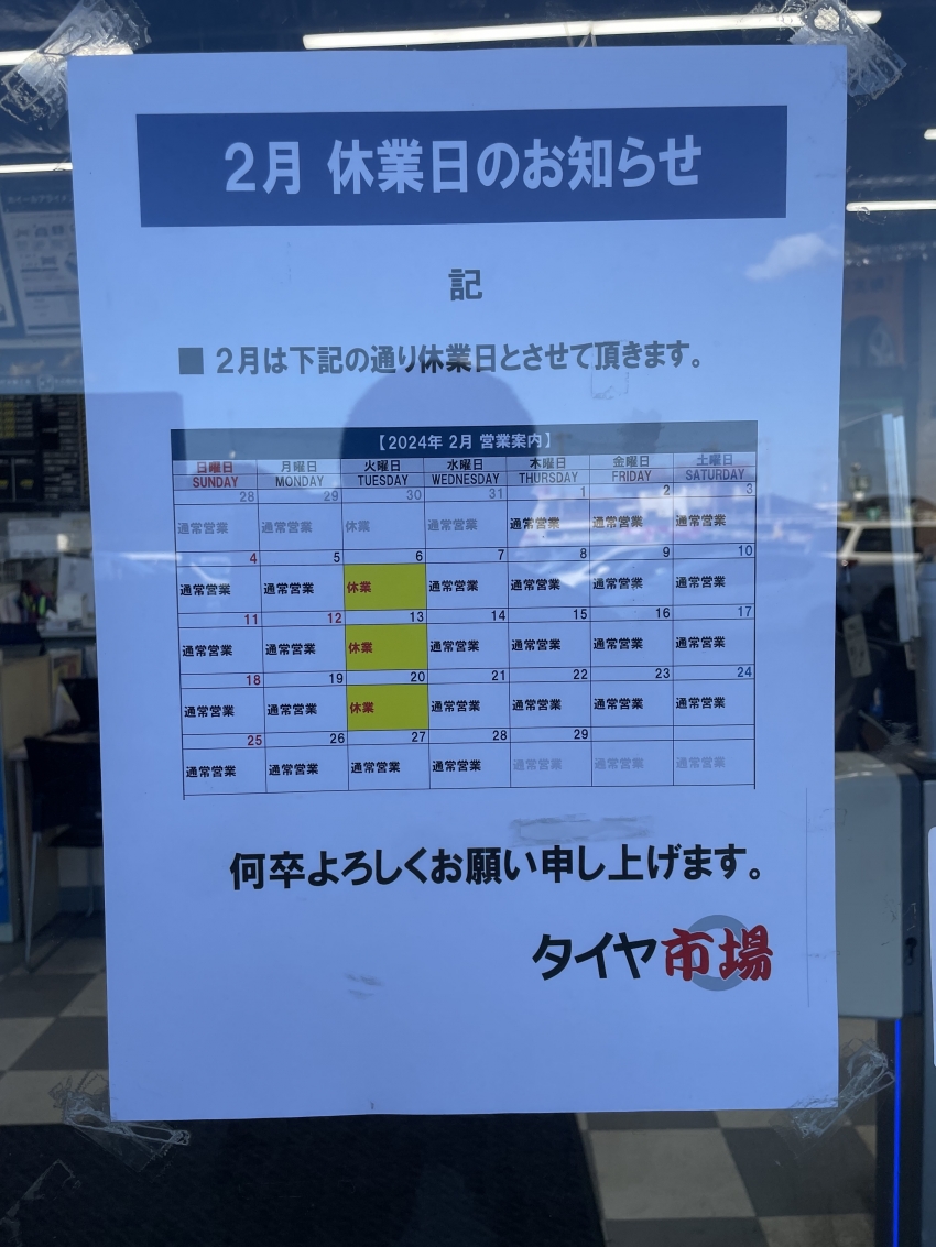 2月の営業日のお知らせです